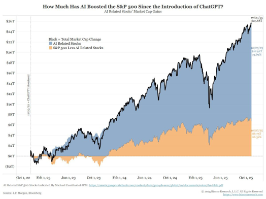 Fig.2 Market cap gains of AI Related stocks vs. S&P 500 less AI related stocks since ChatGPT launch in October 2022;